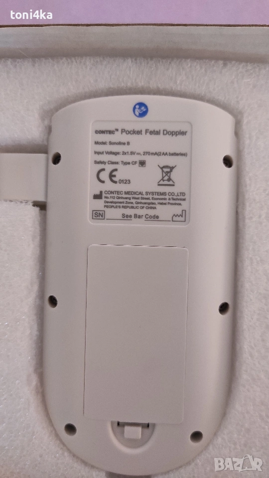 Нов доплер за отчитане на сърдечни тонове на бебето. - LCD дисплей с подсветка 45 х 25 мм. - Захранване: 2 броя батерии АА - Окомплектован с 1 бр. ултразвукова сонда с честота 2 MHz - Обхват на измерване: 50 – 240 уд./ мин. - Индикатор за статуса на батерията - Индикатор за слаб заряд на батерията - Вграден високоговорител - Изход за слушалки - Непрекъсната работа >10 часа - Автоматично изключва след 1 минута - Размери: 135 х 95 х 35 мм.