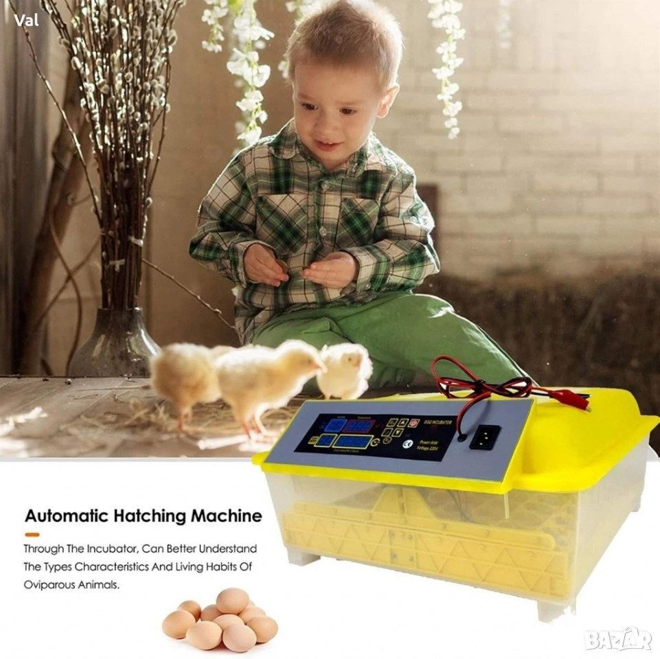 Капацитет: 48 яйца Мощност: 80W Захранване: 110V AC / 12V DC (двойно захранване) Автоматично обръщане: на всеки 2 часа Дисплей: LED – температура, влажност, ден от инкубацията, време до обръщане Материал: Прозрачна устойчива пластмаса Подходящ за: Пилета, патици, гъски, пъдпъдъци, пуйки, други домашни птици Вградени системи: вентилатор за циркулация на въздуха, контрол на влажността, термостат Ниво на шум: Ниско (подходящ за вътрешни пространства)
