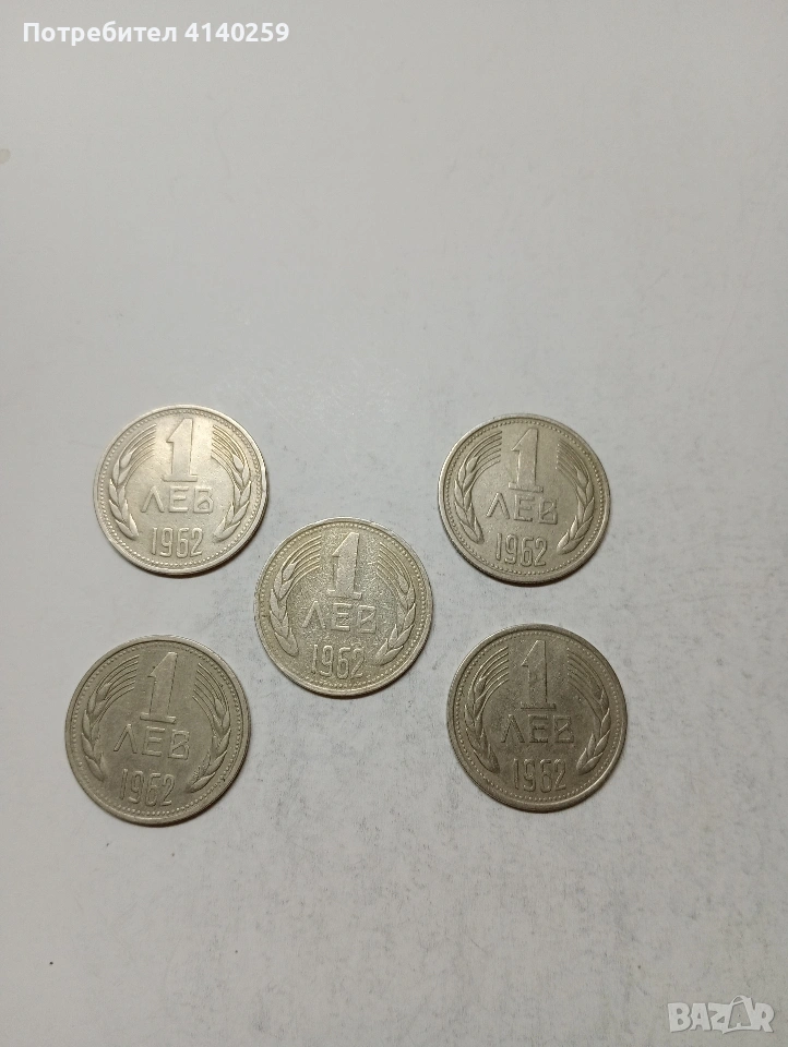 БЪЛГАРСКИ МОНЕТИ 1 ЛЕВ 1962 Г НЕЧИСТЕНИ ЦЕНА ЗА 5 БРОЯ СЪСТОЯНИЕ ВИДИМО ПОЛУЧАВАТЕ СНИМАНИТЕ МОНЕТИ РАЗГЛЕДАЙТЕ ДРУГИТЕ МИ ОБЯВИ ДА КОМБИНИРАТЕ ДОСТАВКА ЕКОНТ ЗА ВАРНА ЛИЧНО