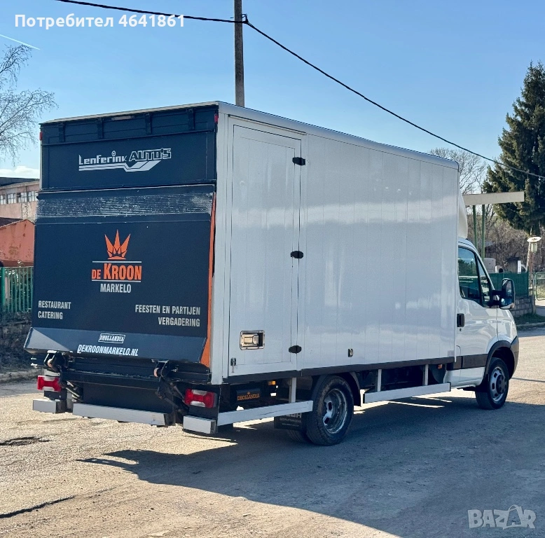 Iveco Daily FACELIFT - ФУРГОН със следните размери: 4.30м. ДЪЛЖИНА/2.20м. ШИРОЧИНА/2.10м. ВИСОЧИНА + ПАДАЩ БОРД DHOLLANDIA - лидер в производството на подемна техника - 2 режима на управление - ДЖОЙСТИК+УПРАВЛЯВАЩА КОНЗОЛА - СТРАНИЧНА ВРАТА със заключващ механизъм.