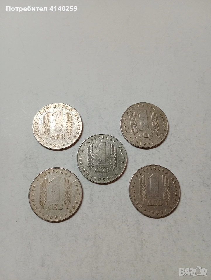 БЪЛГАРСКИ МОНЕТИ 1 ЛЕВ 1969 Г НЕЧИСТЕНИ ЦЕНА ЗА 5 БРОЯ СЪСТОЯНИЕ ВИДИМО ПОЛУЧАВАТЕ СНИМАНИТЕ МОНЕТИ РАЗГЛЕДАЙТЕ ДРУГИТЕ МИ ОБЯВИ ДА КОМБИНИРАТЕ ДОСТАВКА ЕКОНТ ЗА ВАРНА ЛИЧНО