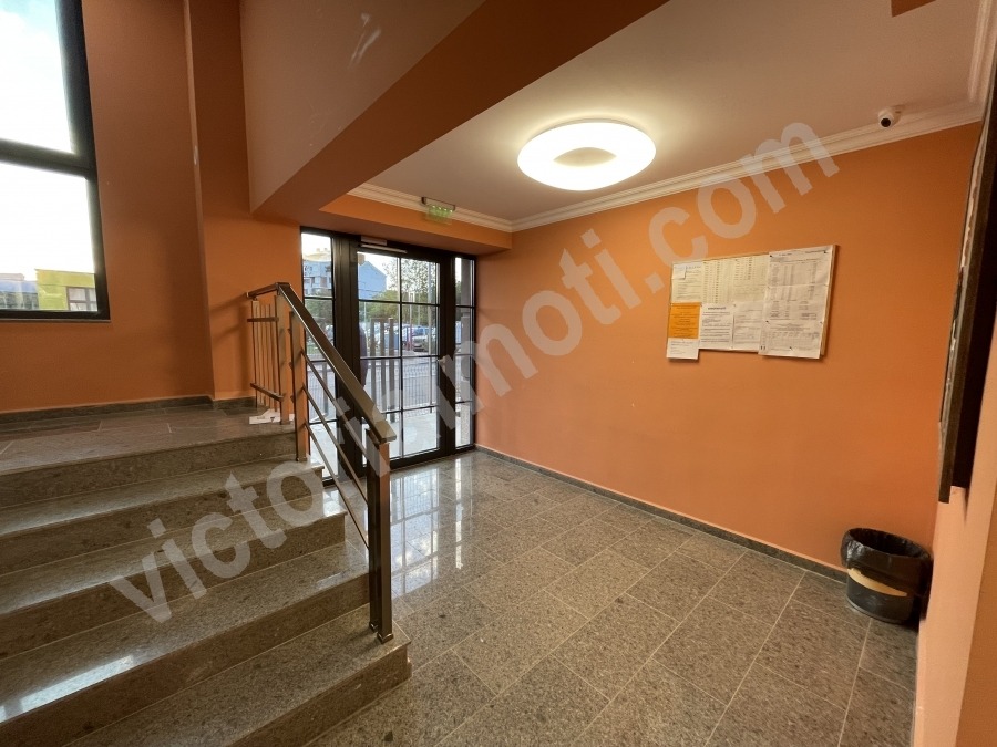Екипът на Виктория имоти предлага на Вашето внимание чисто нов апартамент в затворен комплекс в Зона Б. Мястото е много харесвано, тихо и спокойно като в близост има паркинг. Разположено е на междинен етаж с изцяло източно изложение, правещ го лесен за отопление. Площта му е разпределена между входно антре, всекидневна с кухненски бокс, спалня, баня с тоалетна, мокро помещение, тераса. Обзаведено е с всички необходими мебели, а като електроуреди разполага с вградени готварска печка, керамични котлони, абсорбатор, хладилник, съдомиялна. Във всекидневната има монтиран инверторен климатик за отопление и охлаждане. Свободен от 20.03.2026 г., но оглед може да бъде направен след началото на март месец. Заповядайте на оглед!