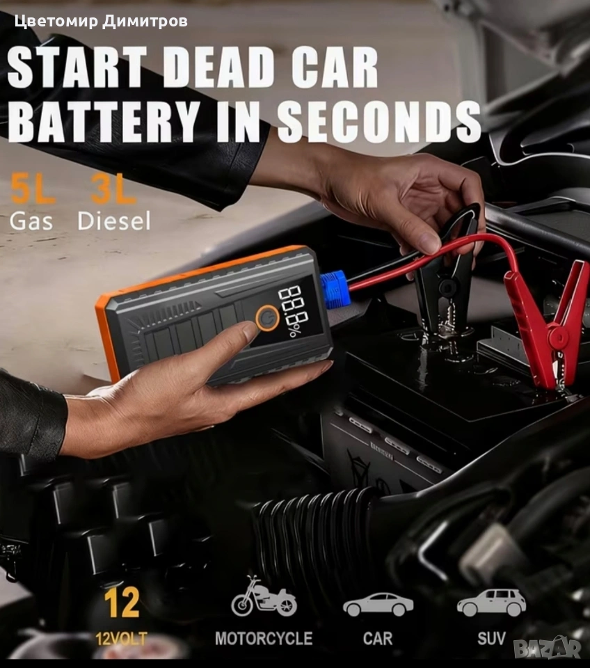 Мощен стартер за автомобили 4 в 1 (car jump starter) power bank → Обява 53792108