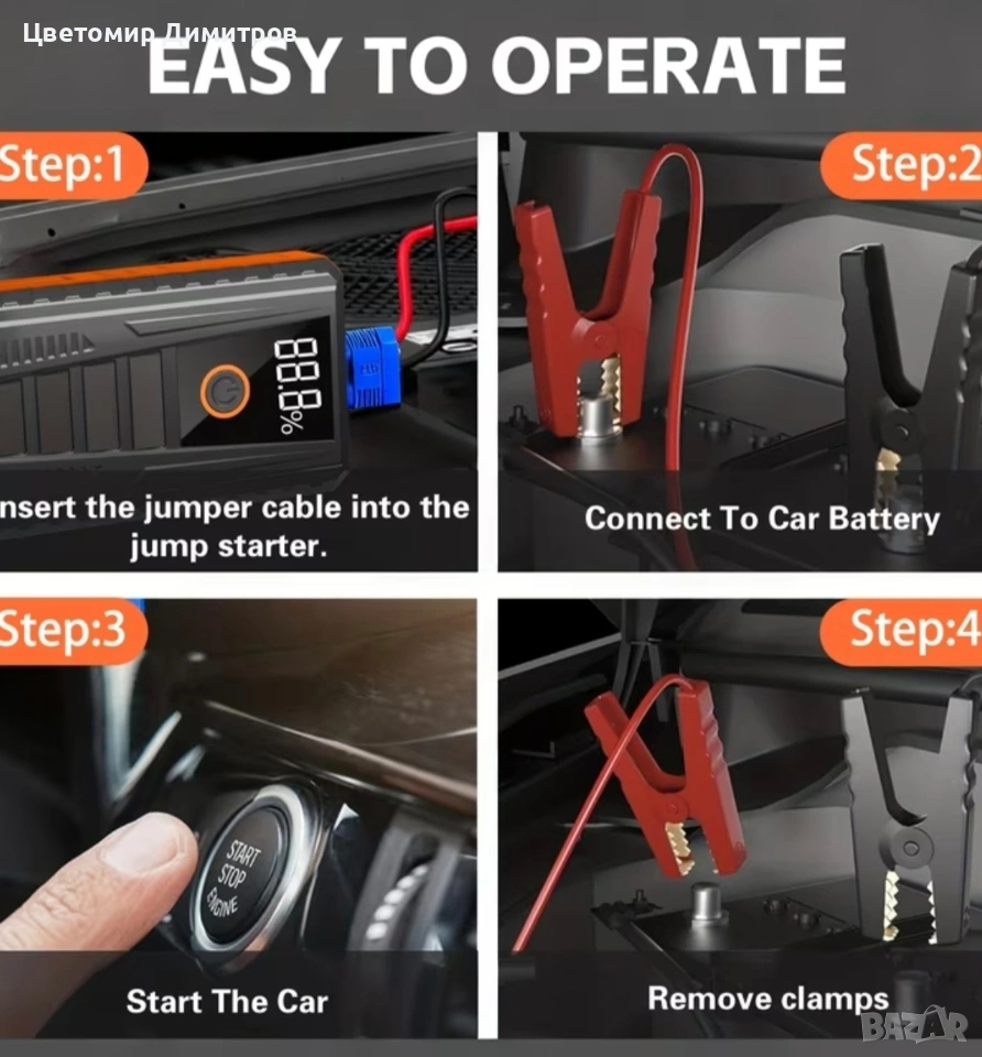 Мощен стартер за автомобили 4 в 1 (car jump starter) power bank, снимка 1 - Аксесоари и консумативи - 53792108 Мощен стартер за автомобили 4 в 1 (car jump starter) power bank, снимка 2 - Аксесоари и консумативи - 53792108 Мощен стартер за автомобили 4 в 1 (car jump starter) power bank, снимка 3 - Аксесоари и консумативи - 53792108 Мощен стартер за автомобили 4 в 1 (car jump starter) power bank, снимка 4 - Аксесоари и консумативи - 53792108 Мощен стартер за автомобили 4 в 1 (car jump starter) power bank, снимка 5 - Аксесоари и консумативи - 53792108 1/5