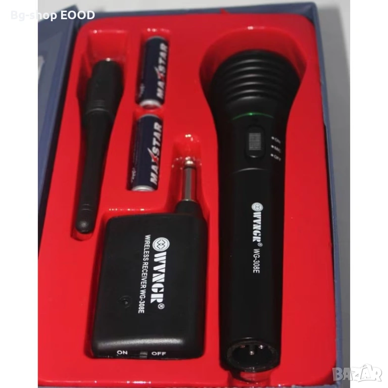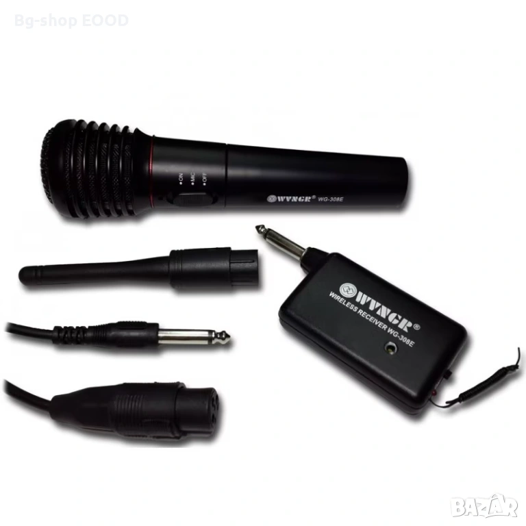 Професионалният Wireless микрофон Ви дава сводоба на движението! Изборът е изцяло Ваш - дали да свържете микрофона с кабела, директно за озвучителната система или да се снабдите с безжичен микрофон, благодарение на wireless устройството, което осигурява обхват на връзката до 25м. Микрофон WVNGR WG-308E e съвместим с всички видове стереоуредби. Подходящ е за всякакви поводи и изяви, дисководещи (DJ-и), Караоке партита.