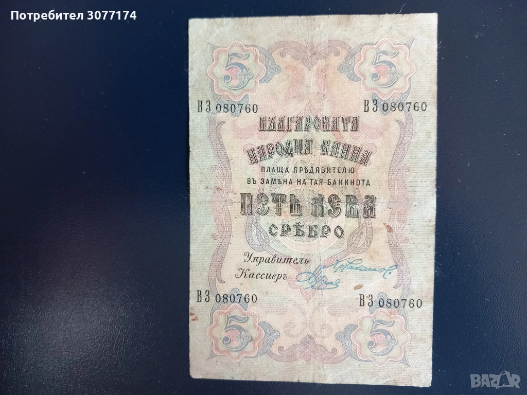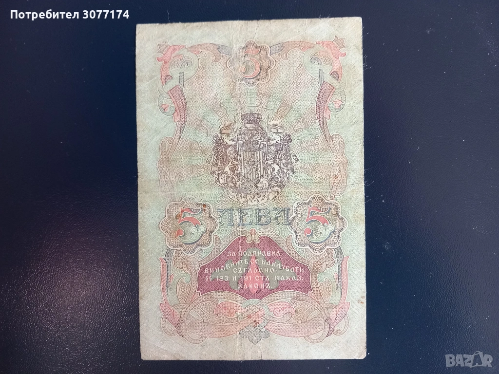 5 лева 1910. Състояние по снимките. Предават се само на лична среща в София. Приемам левове.