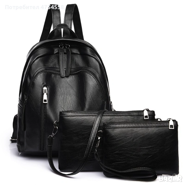 Дамска раница от висококачествена кожа. Подарък малка чанта и портмоне/размер на раница: 24 x13x30cm
