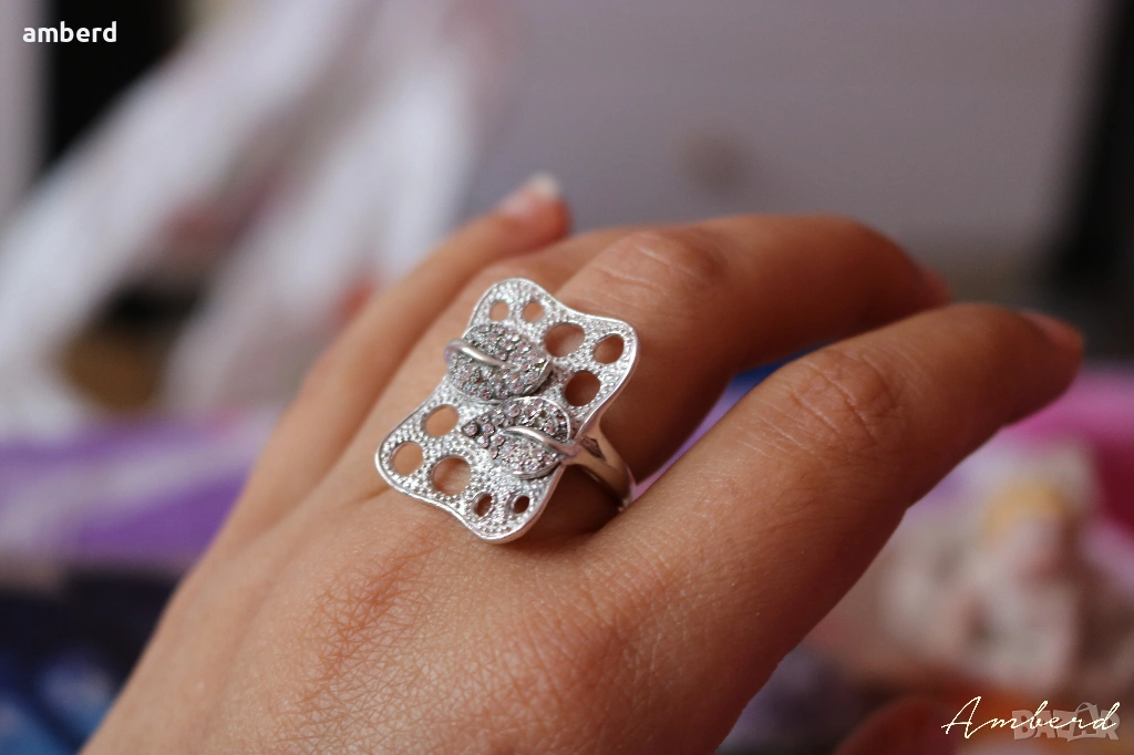 Уникално красив пръстен, изработен от сребро проба 925 и 52 бели циркони. Вътрешен диаметър - 17.7мм. Тегло - 5,10 гр. Можем да ви изработим този модел в желан от вас размер.