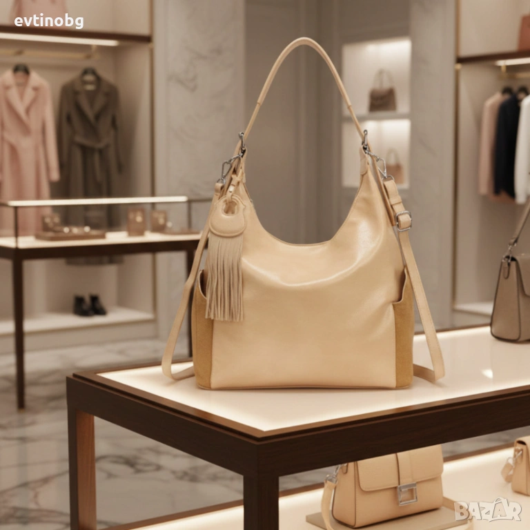 Дамска чанта с висулка и странични джобове в 7 цвята — стилна, вместителна и практична
