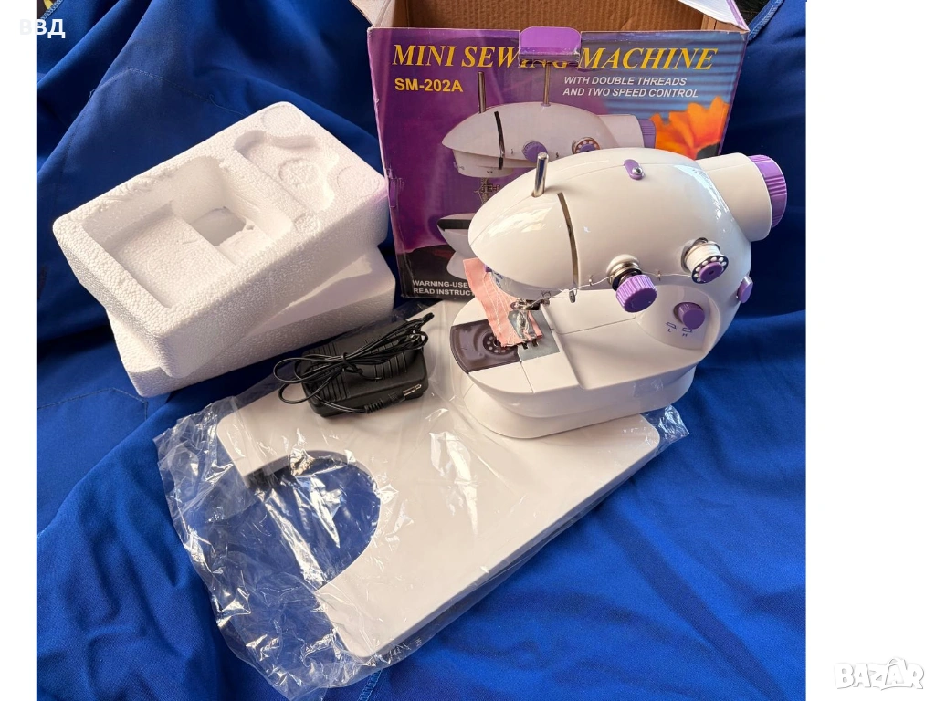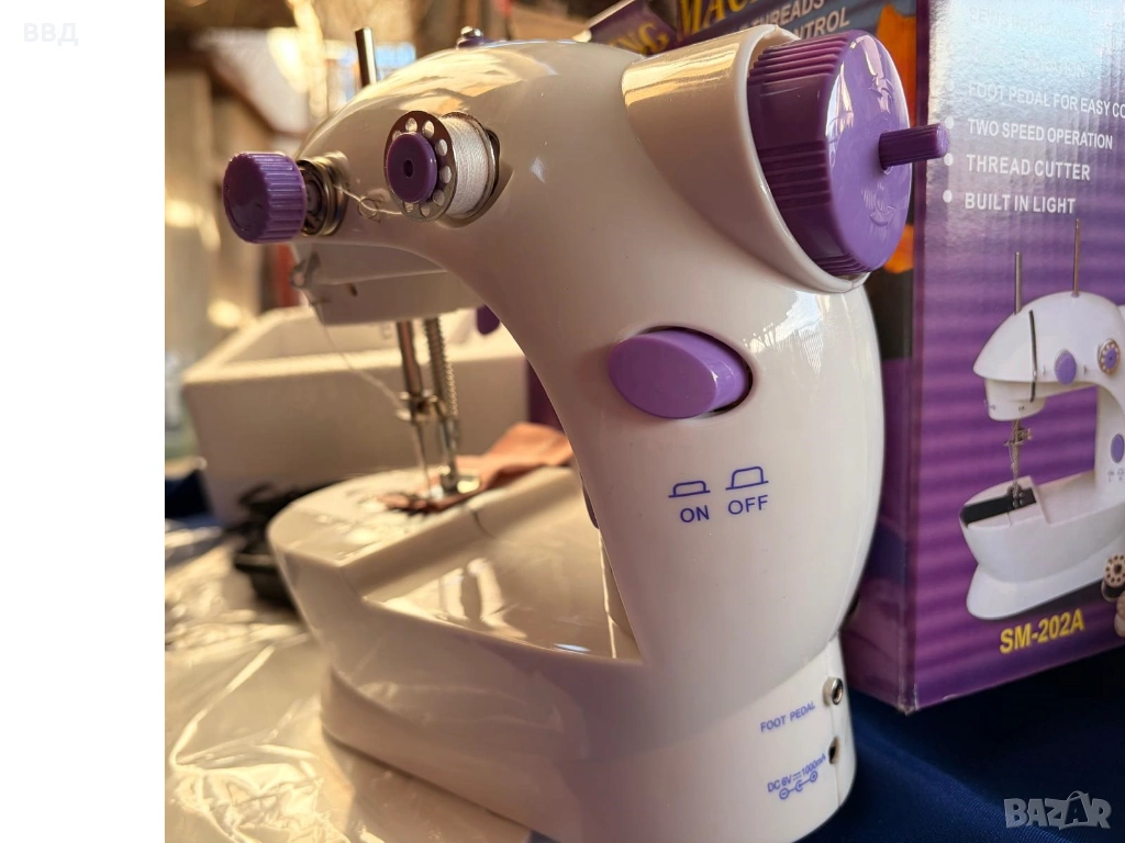 Малка електрическа шевна машина SM-202A, в оригинална опаковка. Моля направете предложение за цената. Описание: Компактна и удобна шевна машина с 5 програми, създадена за домашна употреба. Подходяща за поправки, ушиване и креативни проекти. Оборудвана със защитен предпазител за безопасност, автоматично навиване на калерчета и контрол на скоростта. Размери: 220 × 130 × 210 мм Мощност: 48 W Захранване: AC адаптер или 4 × AA батерии (не са включени) Гаранция: 12 месеца Доставка: С Еконт до 4 работни дни с опция Преглед ---