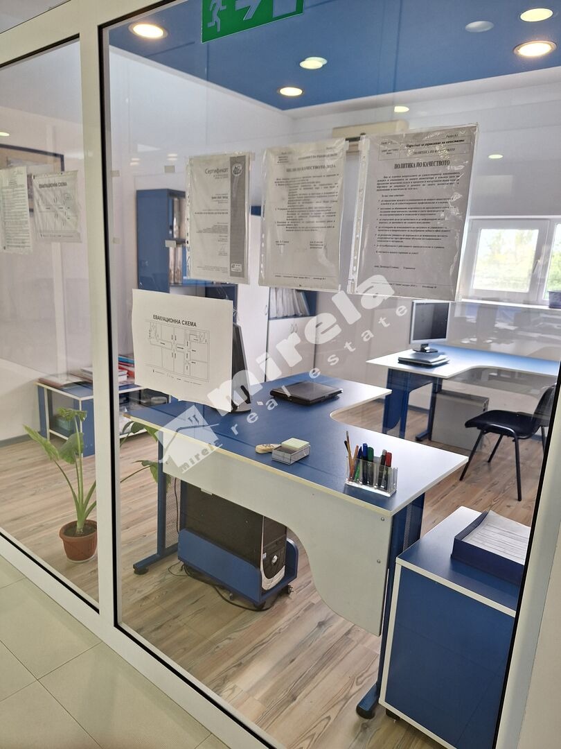 Офисите за ръководния и друг състав се намират на втория ежаж и представляват климатизирани и оборудвани 8 помещения, вкл. заседателна зала, кухненски бокс, кабинет на Управител и Зам. управите, счетоводство, офертен отдел и др. На вторият етаж до офисите има едно цяло помещение от 312 м2 което е оставено на груб строеж.