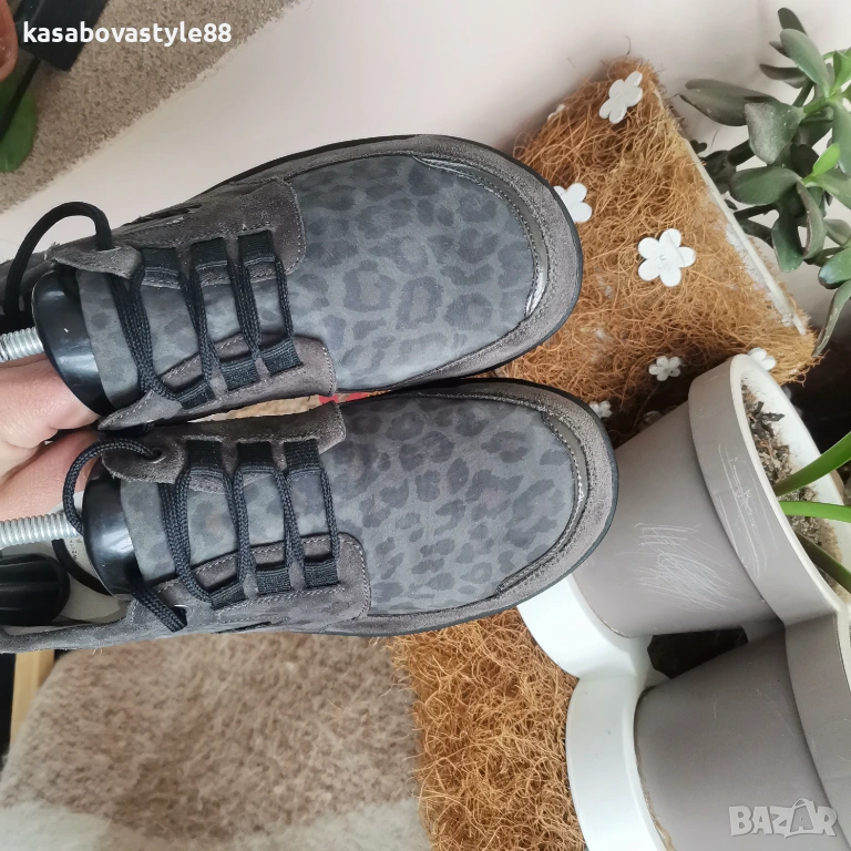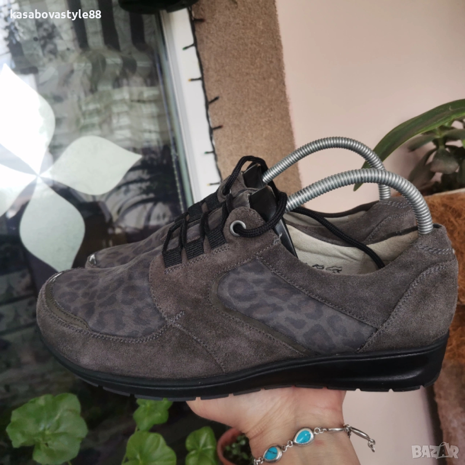 Висококачествени ортопедични обувки от немската марка Waldlaufer В топ състояние!! Изработени от естествена кожа в тигрови десени и естествен велур в кафяв цвят. Проектирани да предпазват стъпалата от натоварване, съчетавайки практичност и комфорт. Разполагат с подвижна и много мека стелка, а обуването е улеснено с притягащи се връзки. Отвътре са направени цялостно от естествена кожа Дължина на стелка 26.5см.Ходило отзад 2.5см.Цялостна височина отзад 10см.