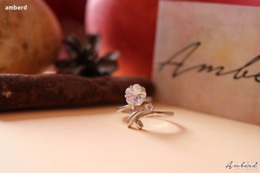 уникален цирконий във формата на цвете. Тегло - 2,50 гр. Вътрешен диаметър 17.8мм.