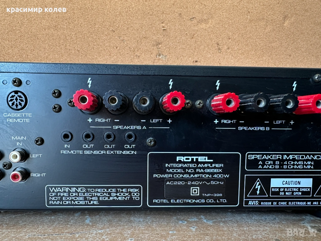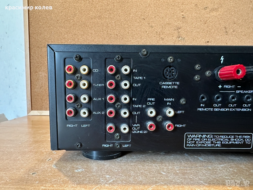 Допълнително: отделяеми Pre Out / Main In, Zone 2 изход, MM фоно-вход (на гърба), дистанционно управление (RR-927)
