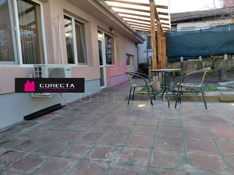 КОРЕКТА ЕСТЕЙТ Ви предлага самостоятелна къща след основен ремонт в центъра на гр.Русе, в близост до Халите. Къщата е на един етаж и се състои от просторен дневен тракт, спалня и санитарен възел. Имота е напълно обзаведен с мебели и електроуреди ( вградена фурна с котлони, хладилник, съдомиялна). Монтиран е и климатик. Отоплението е решено посредством камина с водна риза, като във всяка стая са монтирани радиатори.