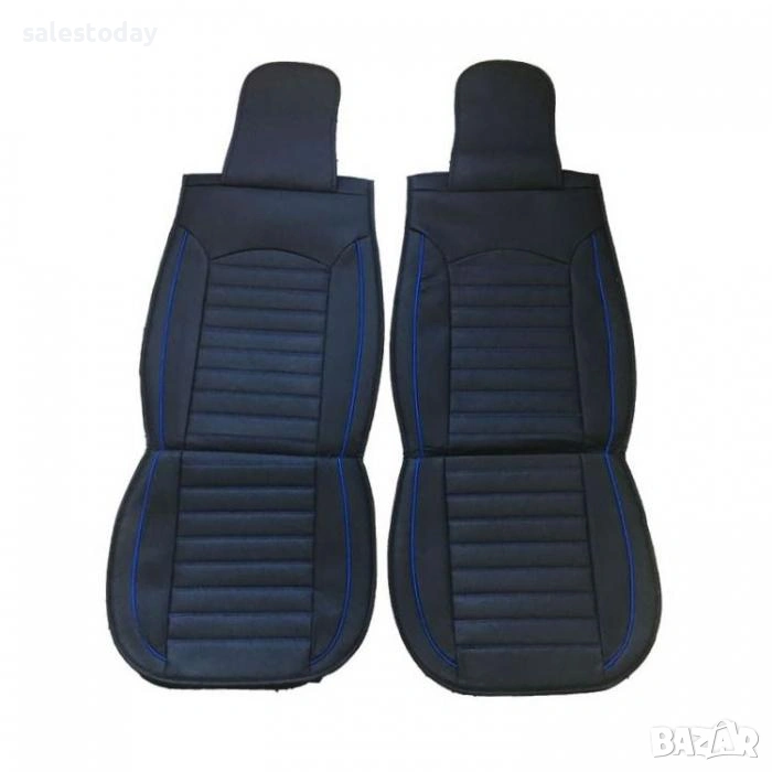 Кожени калъфи за предни седалки на автомобил, 2бр. Кожени подложки със син кант