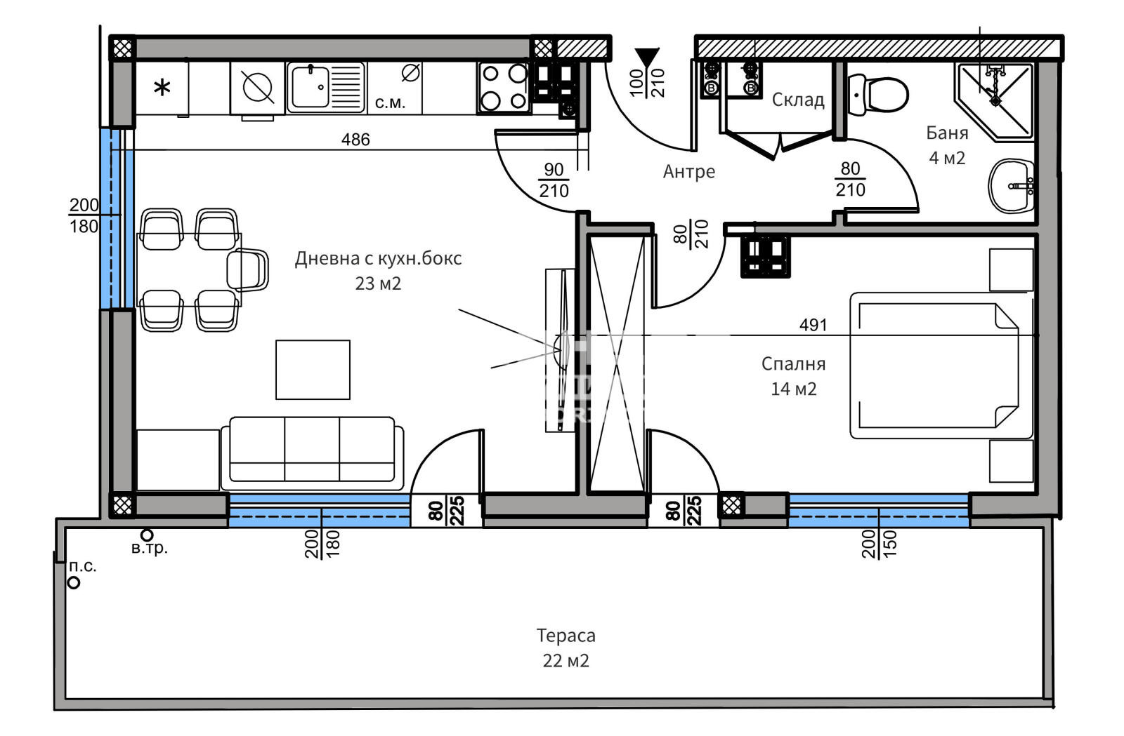 Оферта 68988 - ИНВЕСТИРАЙТЕ ВЪВ ВАШИЯ КОМФОРТ! Две МАЛКИ СГРАДИ с по 12 апартамента всяка, разположени на асфалтов път , в старата част на кв.Остромила. Предлагаме ви двустаен апартамент с изложение ЮГ/ЗАПАД със следното разпределение: дневна 23кв.м. с трапезария и кухненски бокс, една самостоятелна спалня 14кв.м., баня с тоалетна, склад/перално, входно антре и една панорамна тераса 22кв.м. тип лятна/зимна градина, обща за двете стаи. Строителството ще се извършва от висококачествени материали и съвременни технологии, които защитават вашия дом от външните влияния. Паркирането е решено посредством външни паркоместа и подземни гаражи и паркоместа. Изберете достоен лукс и така мечтаната хармония и сигурност.