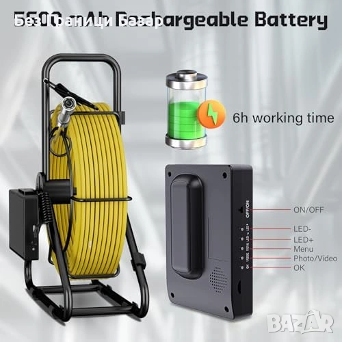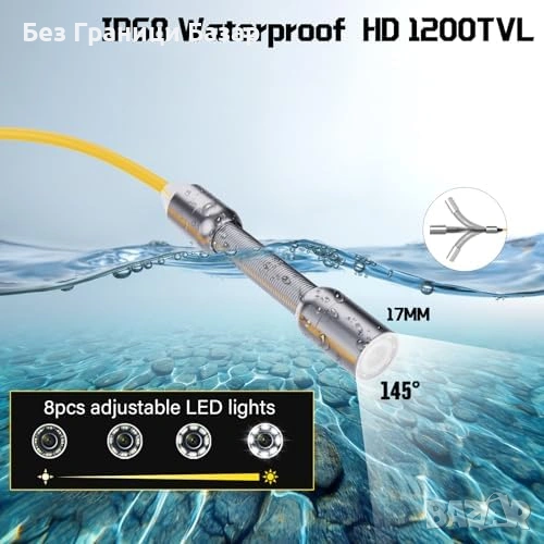Нов бороскоп Канална камера 20м с HD монитор запис 17мм IP68 LED светлини