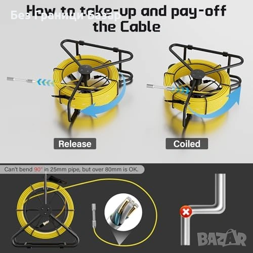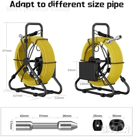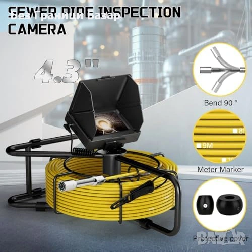 Инспекционна камера за тръби с 4.3" HD цветен дисплей и сенник