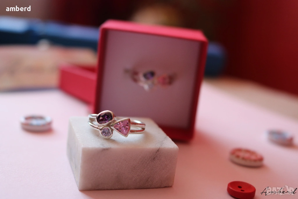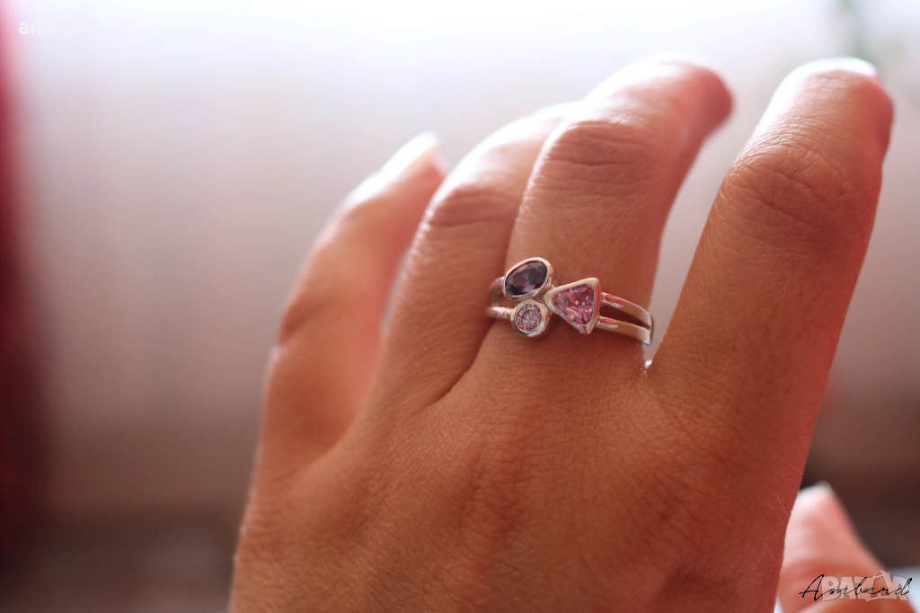 Стилен и елегантен пръстен, изработен от сребро проба 925. Вътрешен