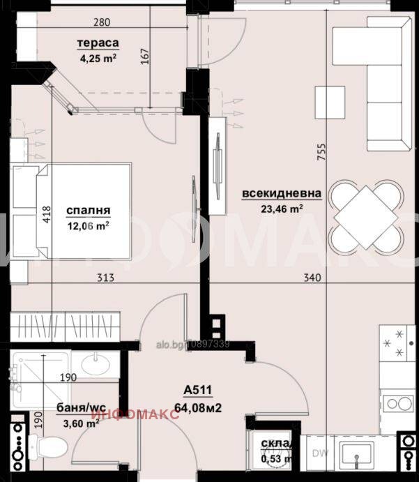 💎 Дневна с кухненски кът: 23.46 кв.м