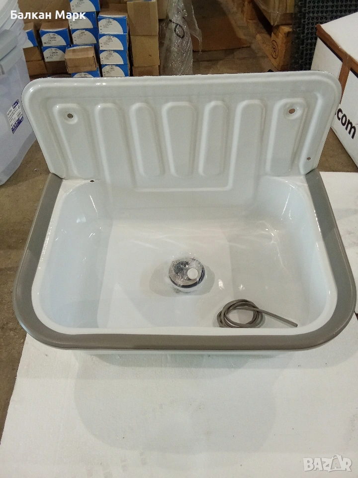 Продавам емайлирана мивка, част от разнообразна палетирана стока, внос от Германия. Подходяща за гараж, работилница, мокро помещение или градина.