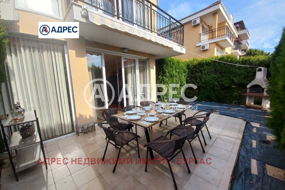Площ на имота 135,37 кв. м. Първи етаж: просторна всекидневна с кухненски бокс и трапезария, от която се излиза в малък двор с веранда, баня и тоалетна, вътрешно стълбище, което води до втори и трети етаж. Втори етаж: две спални с обща тераса и частична гледка море, санитарен възел. Трети етаж: родителска спалня със санитарен възел, тераса с гледка море. Къщата е напълно обзаведена и оборудвана.
