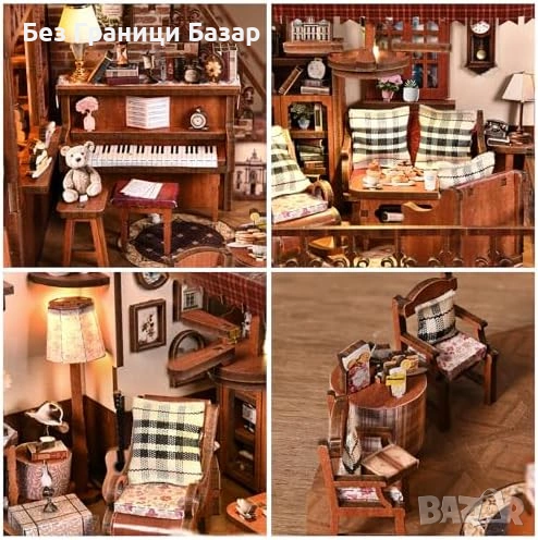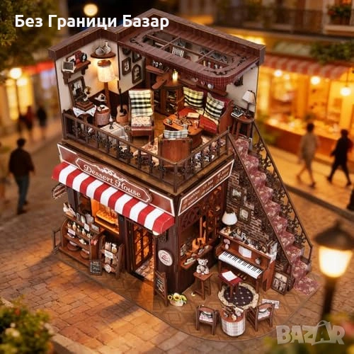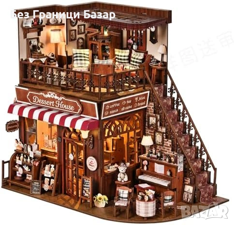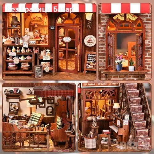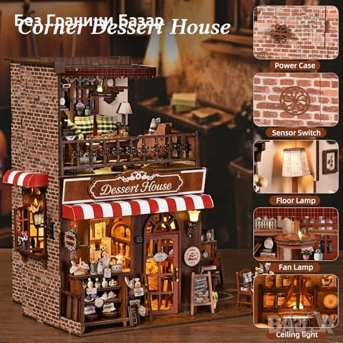 Нов пъзел 3D дървен book nook комплект мини сладкарница с LED светлина
