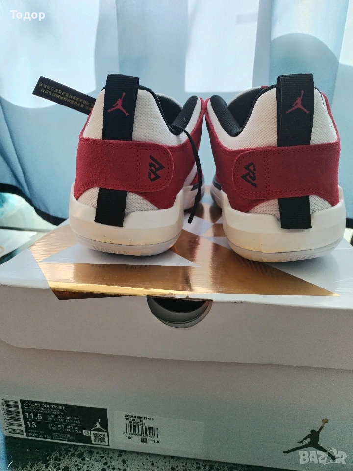 Оригинални! Чисто нови! Класическият модел Air Jordan 1 take 5 в размер 45.5 с дължина на стелката 29.5см. е на разположение. Обувките са в многоцветен дизайн.Давам с тест и преглед.