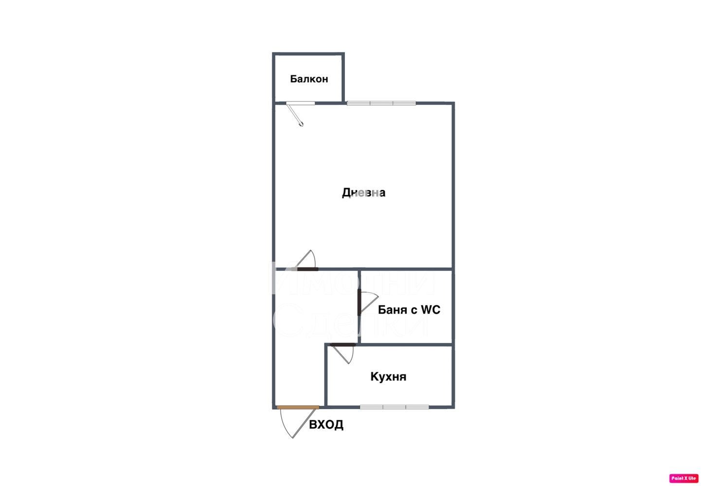 Коридор, всекидневна, кухненски бокс, баня с тоалетна и балкон.