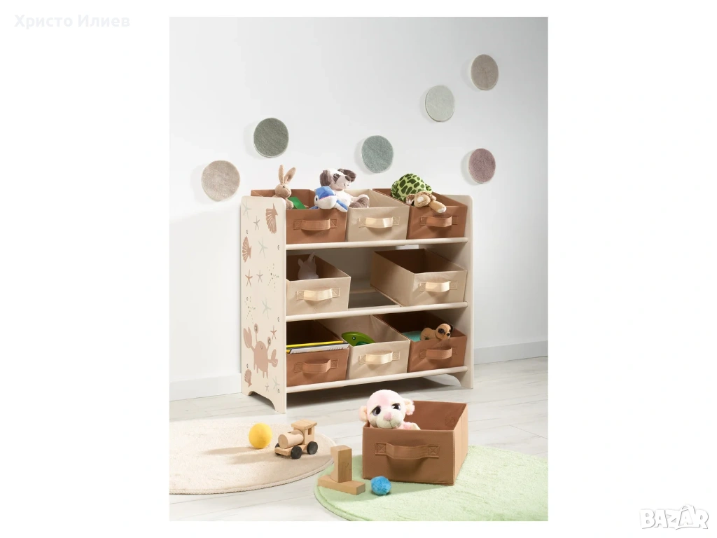 Детска дървена етажерка органайзер за детски играчки и принадлежности