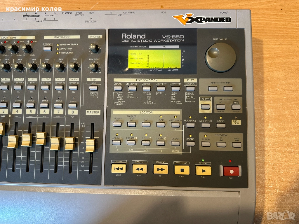 Добро техническо и визуално състояние.Roland VS-880 е класически дигитален мултитрак рекордер / студио workstation от средата на 90-те години (1996–1997 г.), първият достъпен all-in-one дигитален записвач на Roland. Той комбинира 8-траков хард диск рекордер, дигитален миксер, редактор и ефекти в един компактен уред – революционен за времето си за домашни и semi-pro студия.