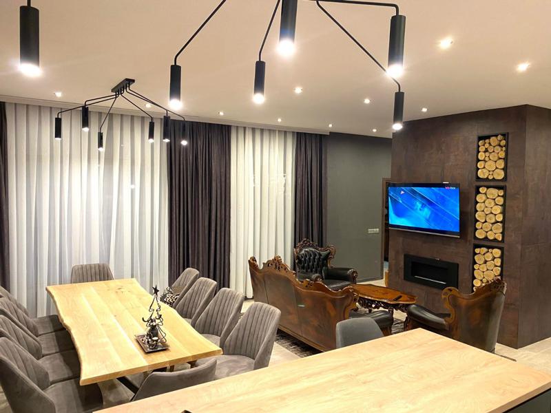Жилището е с площ от 260 кв.м и предлага комфорт и функционалност, подходящи както за голямо семейство, така и за две семейства. Апартаментът разполага с три самостоятелни спални, три бани с тоалетни, просторен хол с трапезария и напълно оборудвана кухня, готова за ползване.