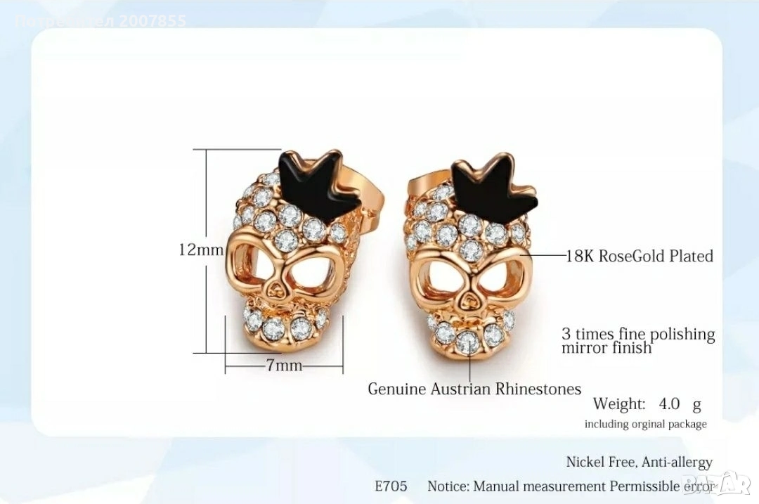 Обици череп с розово злато , снимка 1 - Обеци - 53795380 Обици череп с розово злато , снимка 2 - Обеци - 53795380 Обици череп с розово злато , снимка 3 - Обеци - 53795380 Обици череп с розово злато , снимка 4 - Обеци - 53795380 Обици череп с розово злато , снимка 5 - Обеци - 53795380 1/5