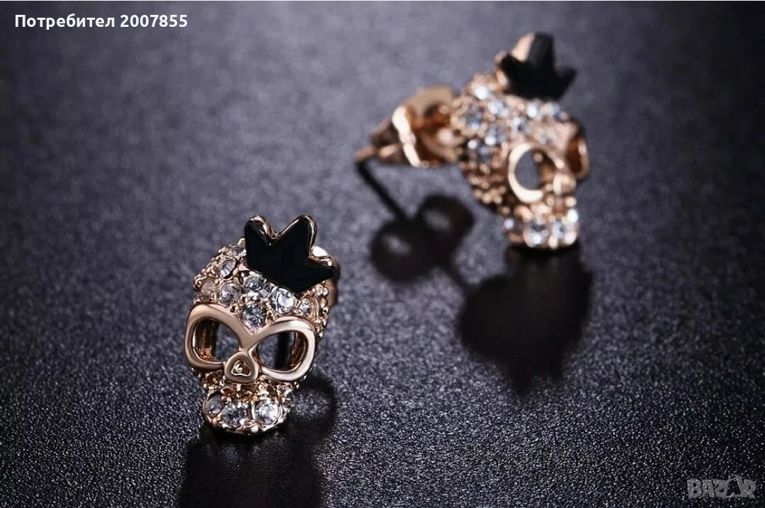 Продавам много красиви и оригинални обици черепи от сребро с покритие от розово злато и австралийски кристали. Стоят нежно и минималистично, не са груби и едри. Много качествени, не са фалшиви, не се изтриват и не почерняват. Чисто нови.