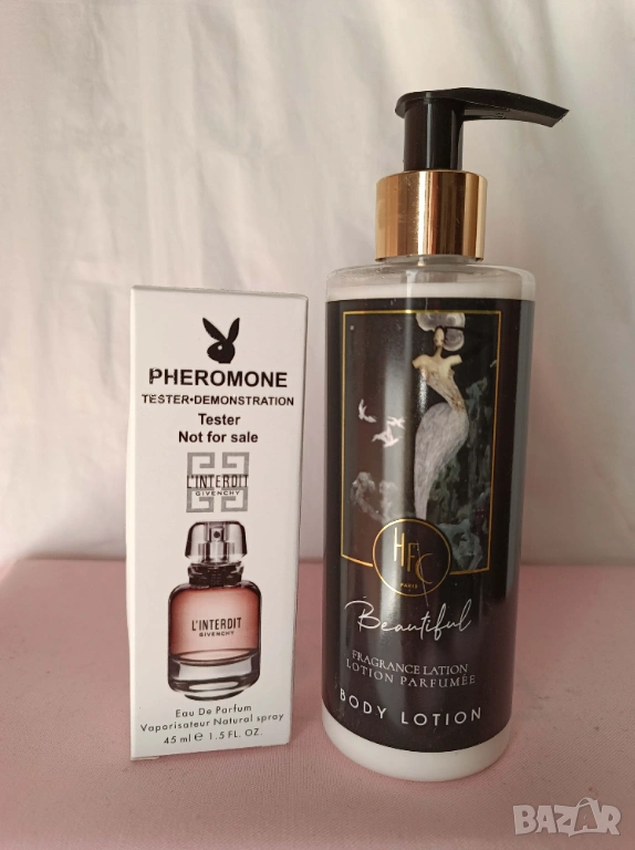 Промо комплект 68-парфюм тестер Gyvenshy Linderdit+лосион за тяло с парфюм → Обява 53795469