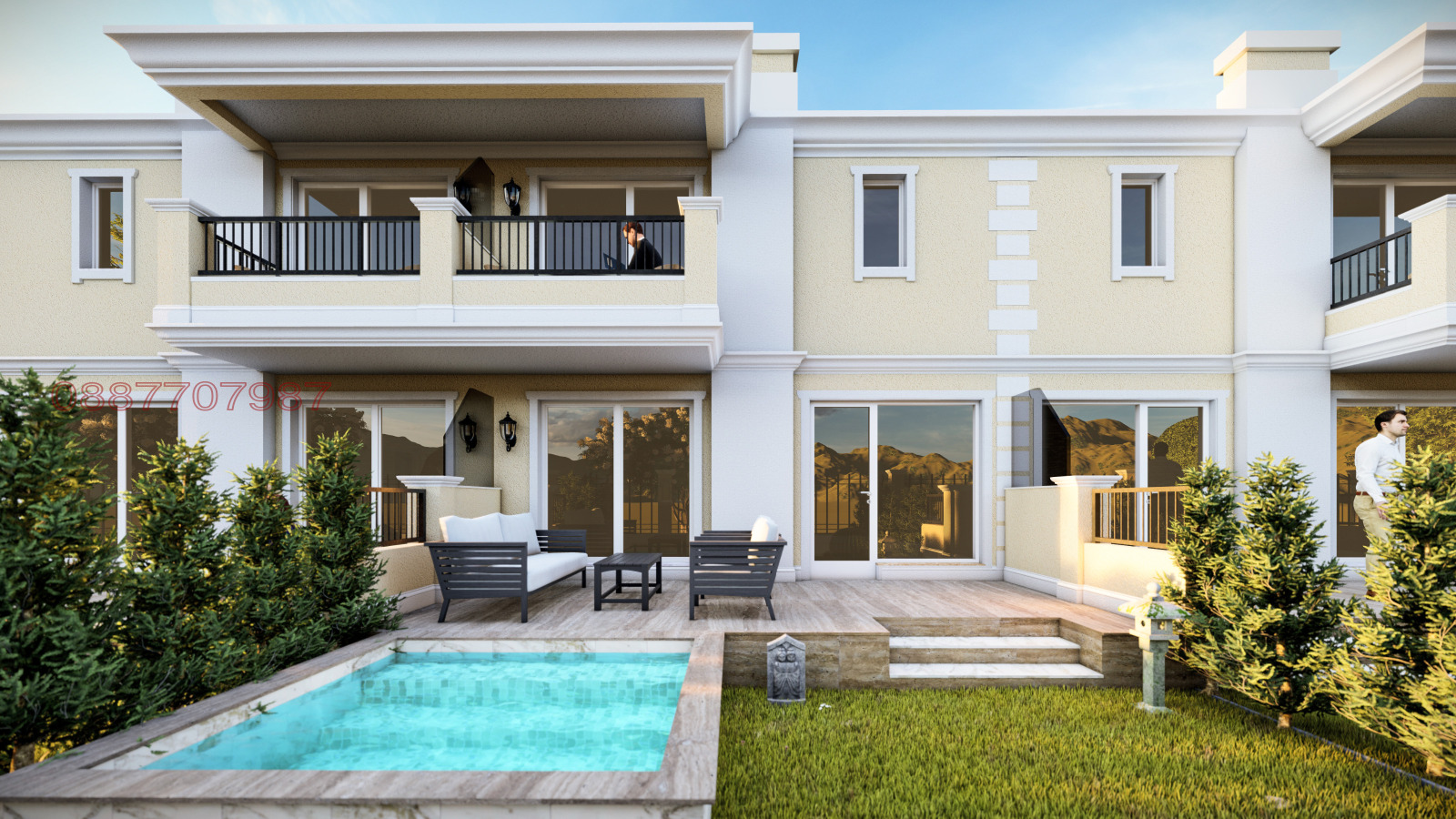 Всяка двуетажна къща разполага с чисто РЗП от 125 кв.м., веранда и индивидуален двор с Южно изложение, паркомясто.