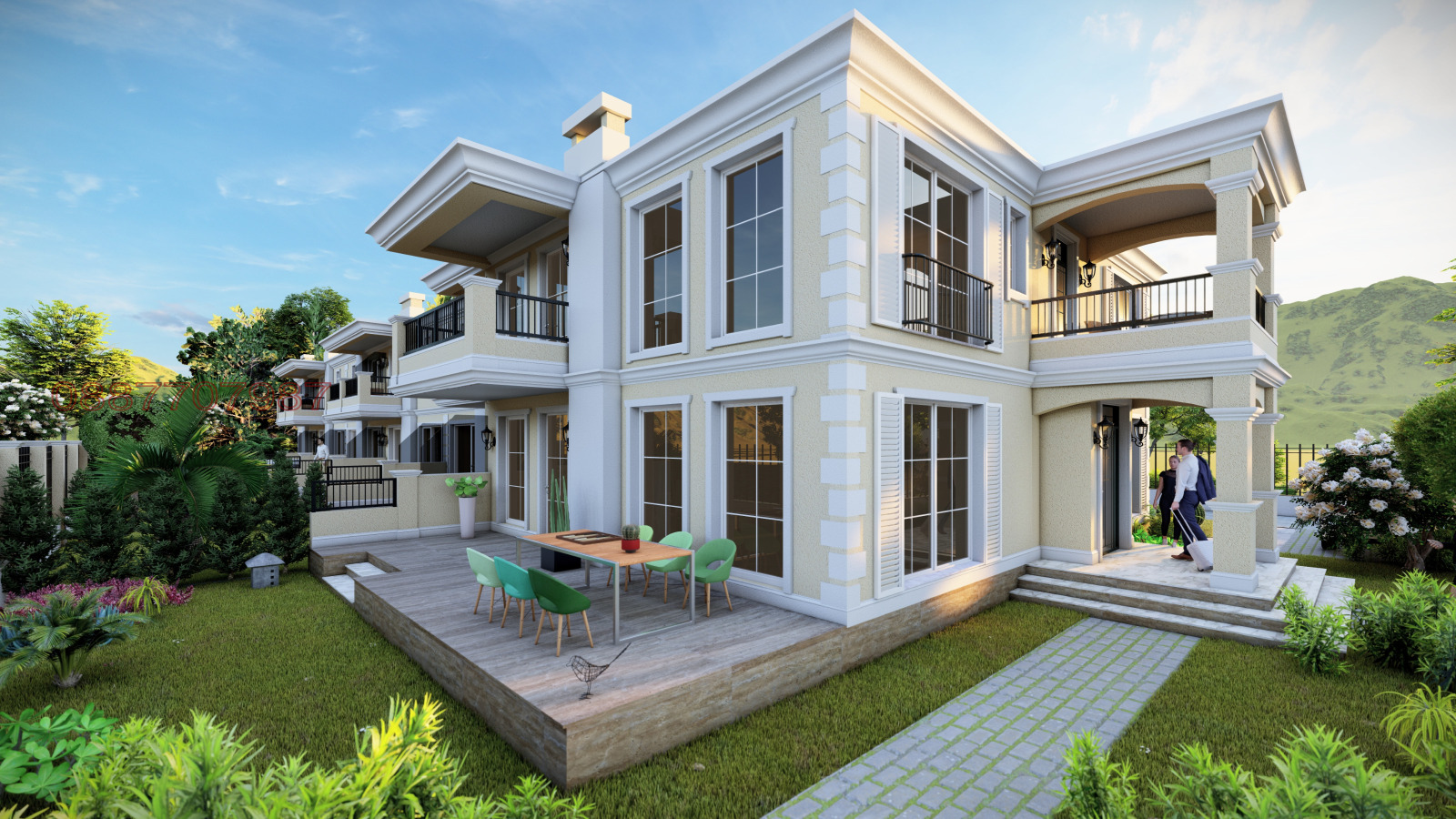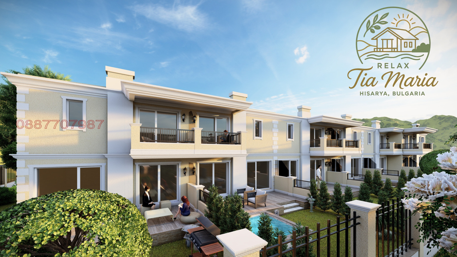 Релакс Тиа Мария предлага редови къщи в модерен затворен жилищен комплекс, находящ се в новата вилна зона на гр. Хисаря, с невероятна гледка към Стара планина и асфалтов достъп, само на 2 минути с кола от центъра на града.