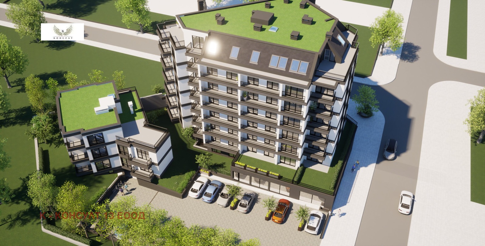 На терена са разположени две тела - 'А' и 'Б', с общ подземен паркинг с предвиден удобен заход от улицата. На партера са разположени търговски обекти за обитателите. Сградата разполага с прекрасен озеленен вътрешен двор за живущите.