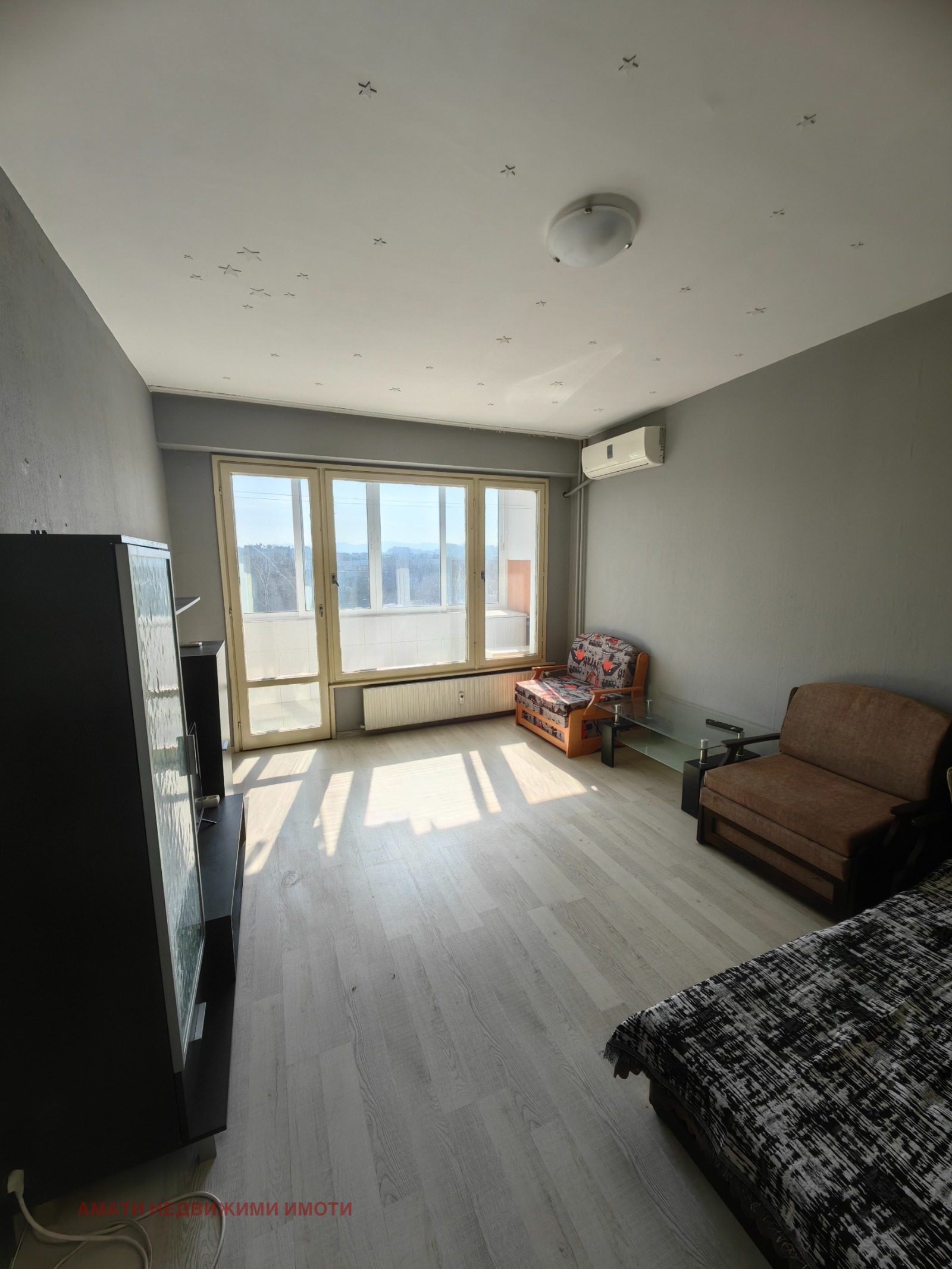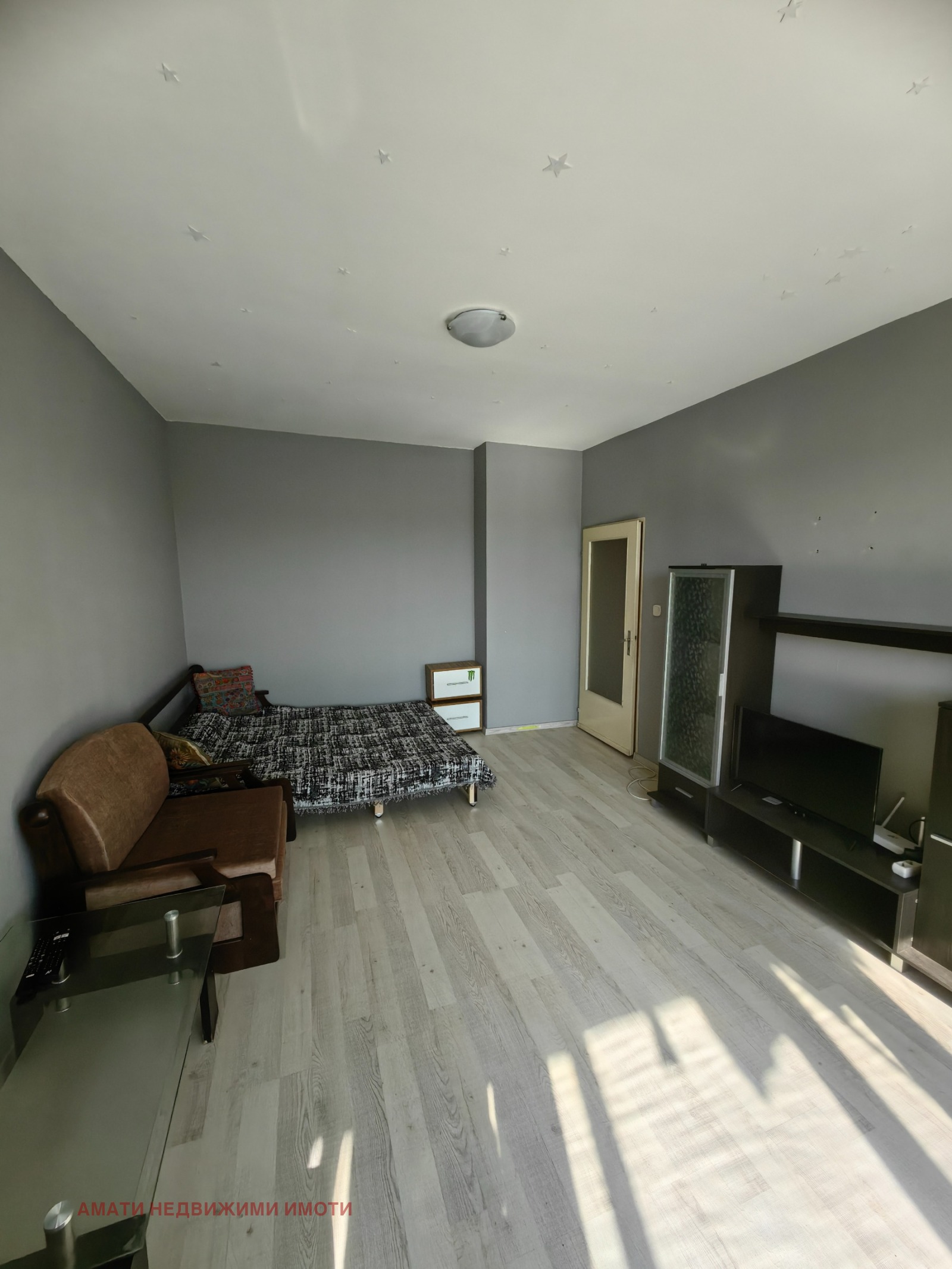 Амати Недвижими имоти отдава под наем едностаен апартамент в ж.к. Хаджи Димитър. Жилището е разположено на седми етаж от девет, отопление на както на ток така и на ТЕЦ. В близост се намират супермаркети, спирки на градски транспорт, фитнес, детски градини и училища.
