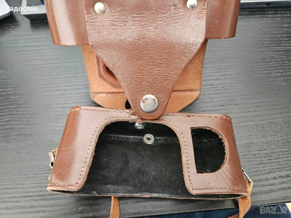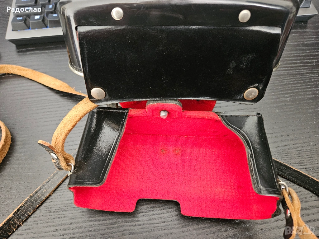 Апаратът е изцяло механичен, ползва батерия Калъфът е здрав, с леки следи от употреба и дребни разлепвания на покритието.