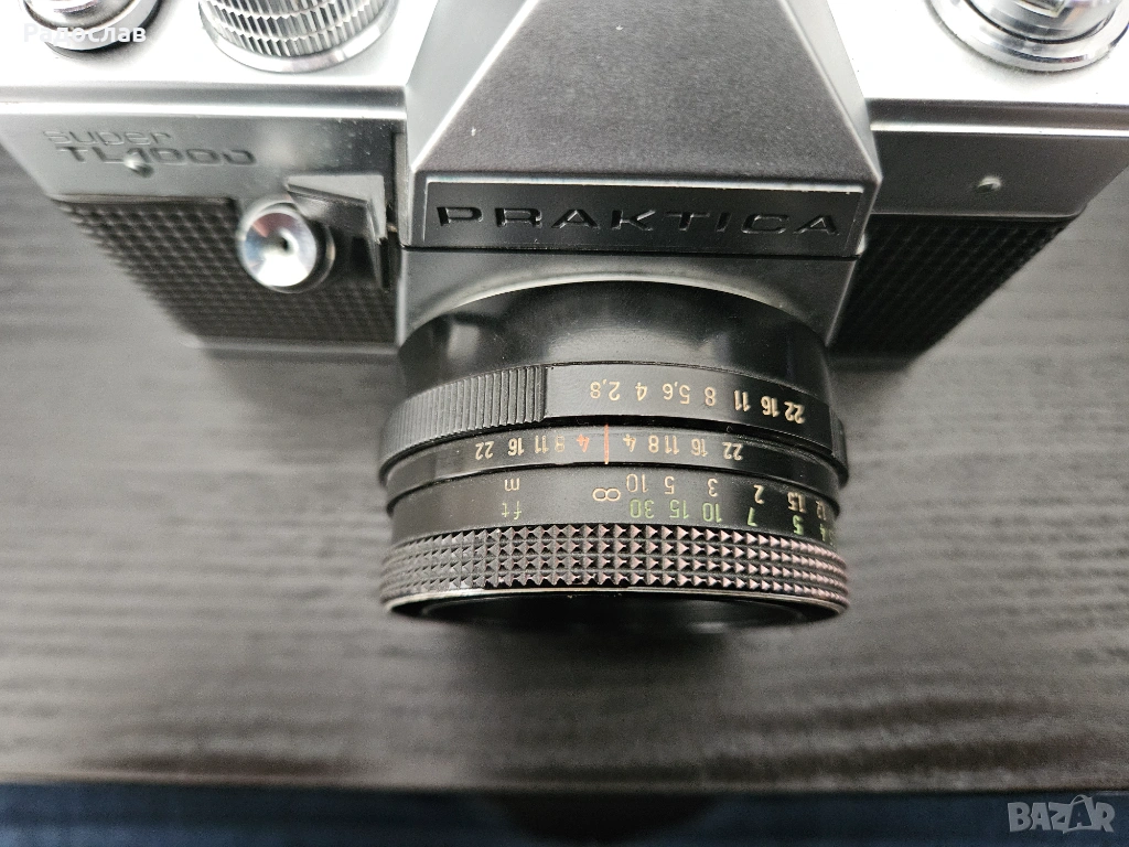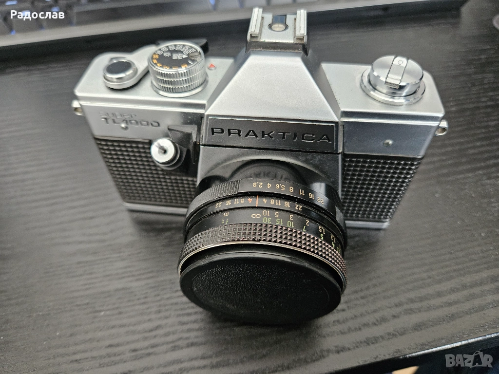 1. Немски фотоапарат Praktica Super TL1000 с обектив Zeiss Tessar 2.8/50 и оригинален калъф.