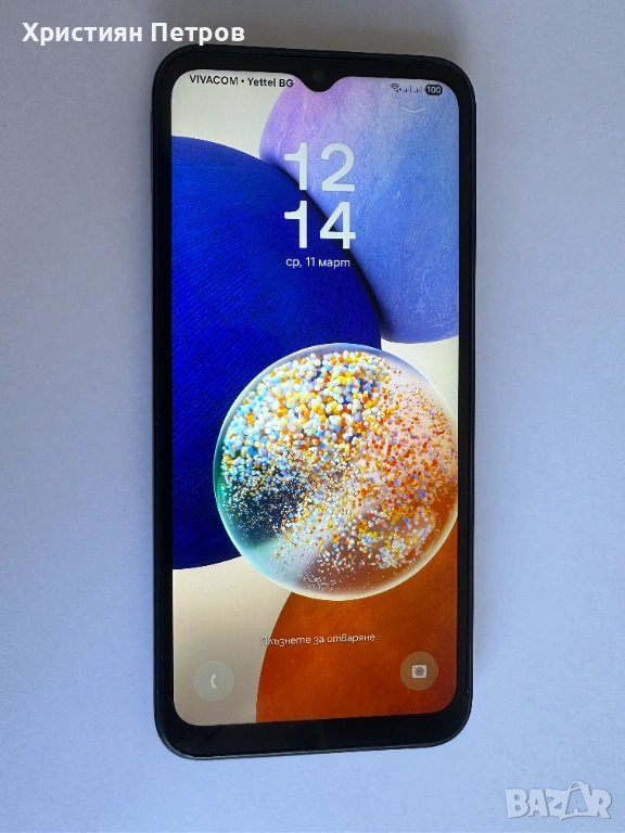 Продавам Samsung Galaxy A14 5G с 64GB вградена памет модел SM-A146P/DSN, Black - черен на цвят. Телефона е фабрично отключен и за двете SIM карти, което означава, че може да работи с всички мобилни оператори. Инсталирана е последна версия Android софтуер за модела - Android 15, One UI версия 7.0. Всички функции работят перфектно. По телефона няма никакви следи от употреба, което може да се види на снимките, телефона е като нов !!! Закупен е от технополис и няма остатъчна гаранция. Продава се пълен комплект с кабел, зарядно, игла за SIM картата, слушалки и бонус - силиконов калъф.