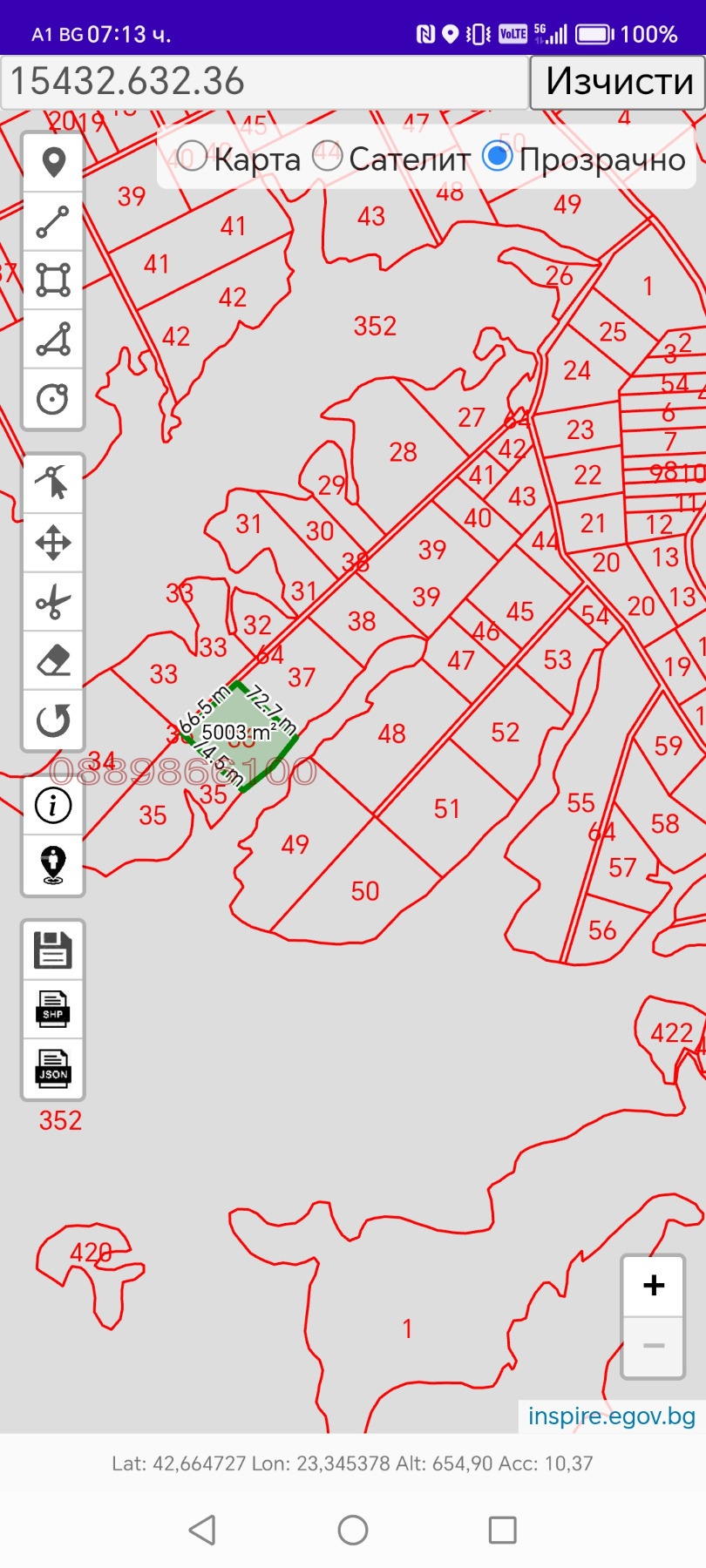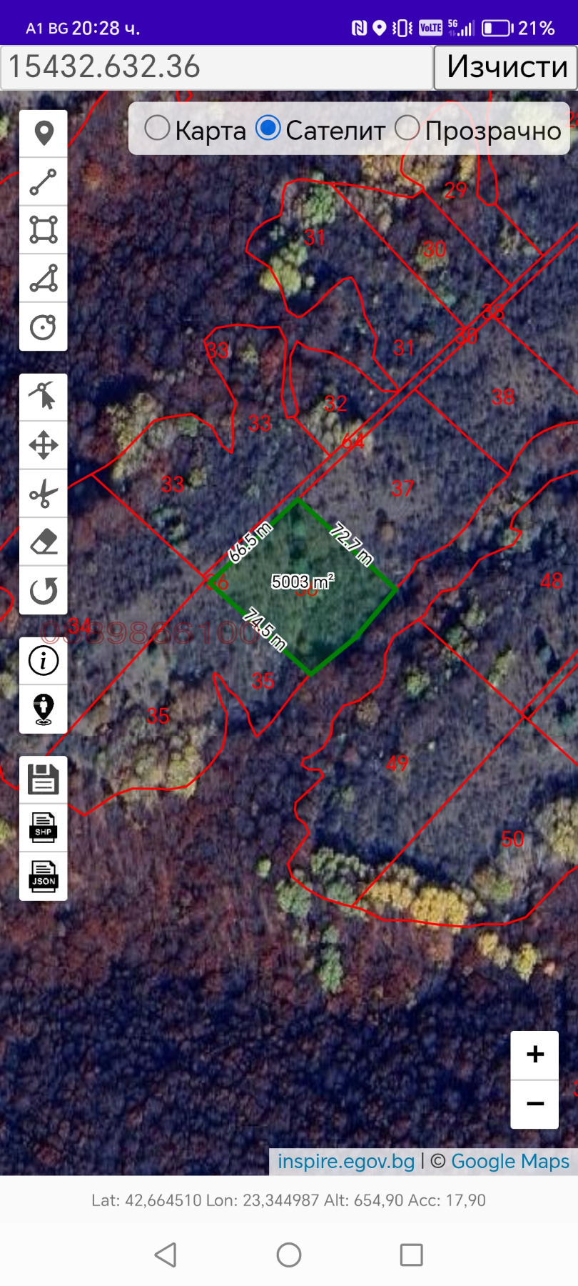 Площ: 4999 кв.м (около 5 дка).