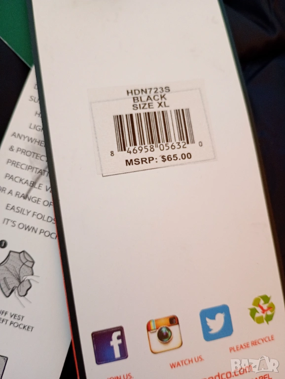 Hawke &Co мъжки елек с пълнеж от гъши пух размер XL- чисто нов с етикети на която се вижда цена от 65 долара
