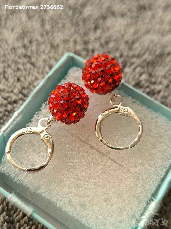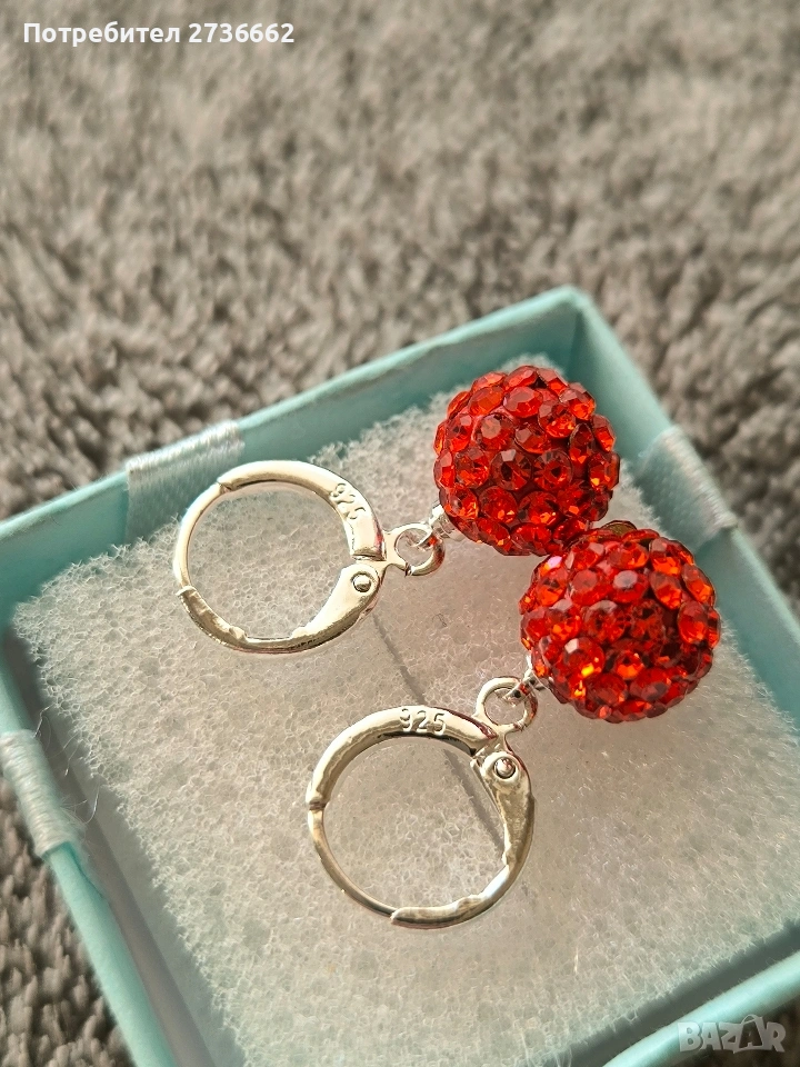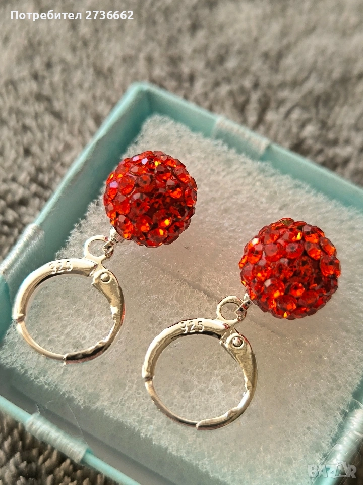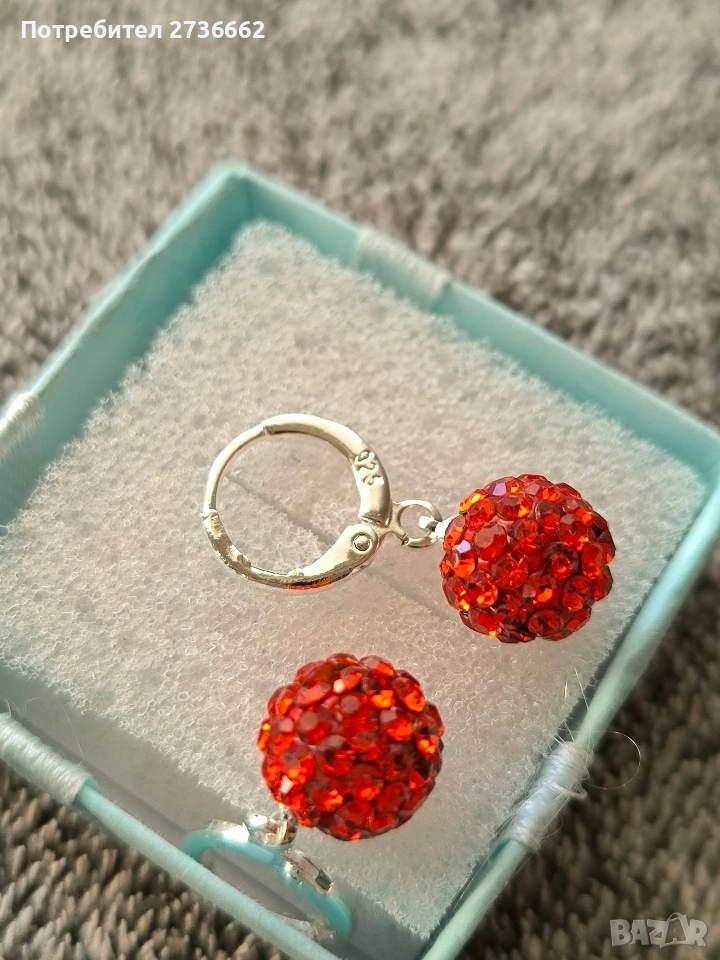 Сребърни обеци с оранжев цирконии → Обява 53795999