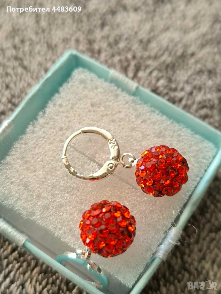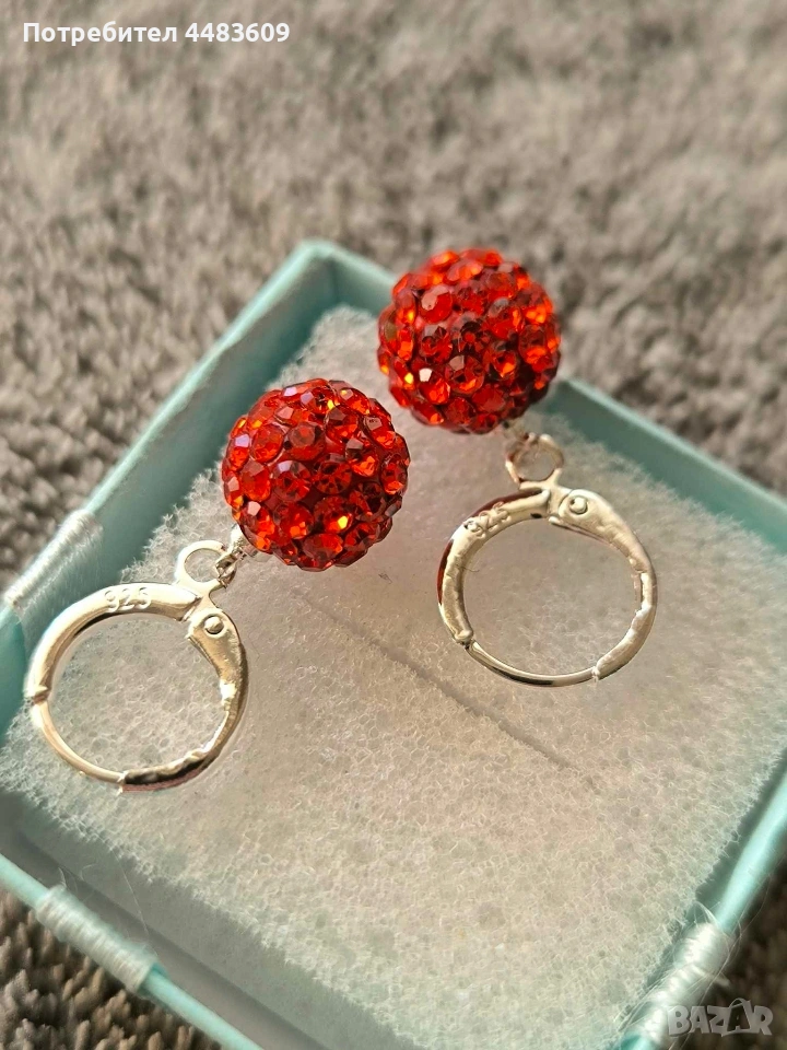 Сребърни обеци с оранжев цирконии → Обява 53796041