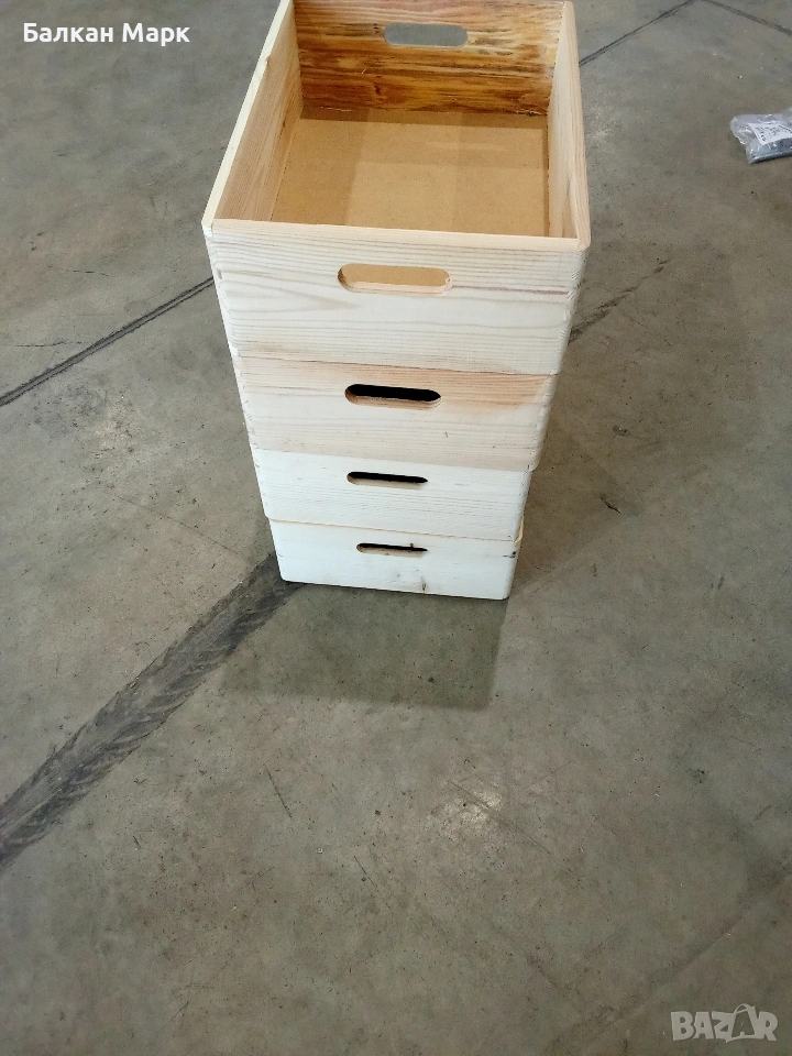 Описание: Нови дървени кутии за съхранение, внос от Германия (палетна стока). Изработени от иглолистна дървесина със сертификат FSC.