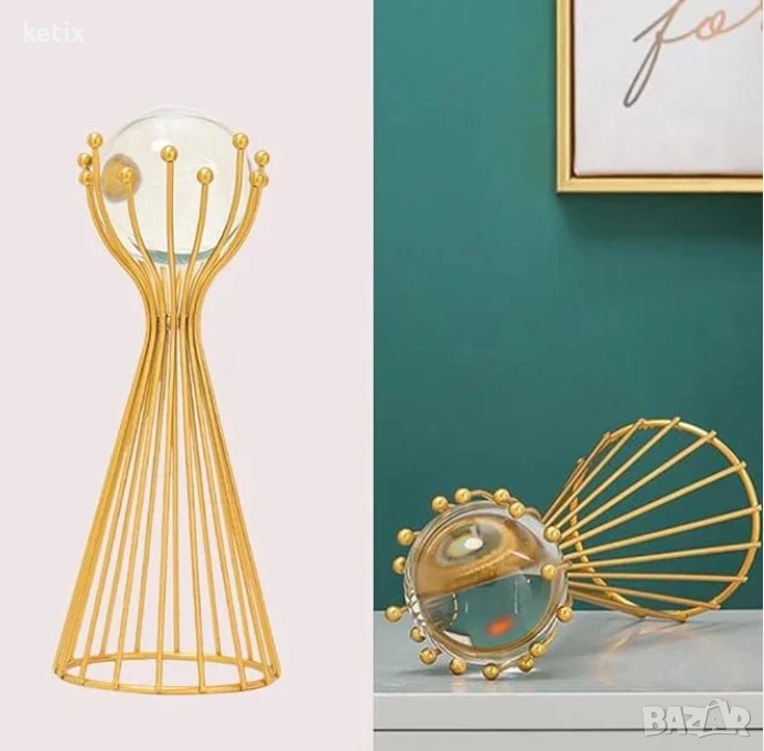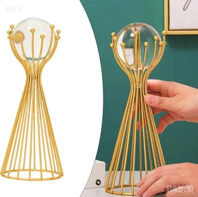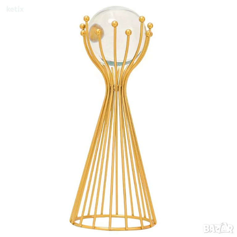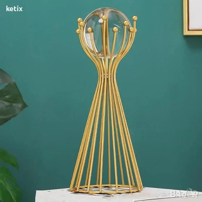 Проектирана с геометричен орнаментален стил, металната скулптура „Кристална топка“ се отличава с уникална и привличаща вниманието форма, която служи като очарователен фокусен елемент във всяко пространство. Нейната обтекана форма и гладки линии въплъщават модерното изкуство, което я прави луксозно допълнение към всеки интериор, особено в златни декори.