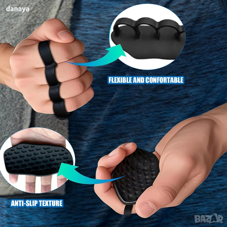 Ергономичният дизайн с отвори за пръстите позволява сигурно и удобно поставяне на ръката, а релефната повърхност създава стабилен и неплъзгащ се захват. Това прави тренировките по-ефективни и комфортни, особено при упражнения с тежести.